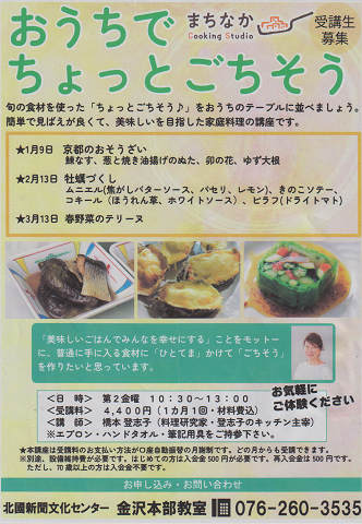 毎月第2金曜日は、北國新聞文化センターお料理教室です!